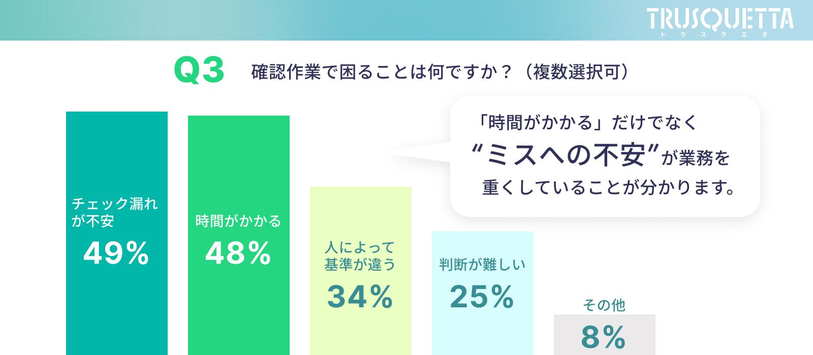 チェック漏れが不安:49%