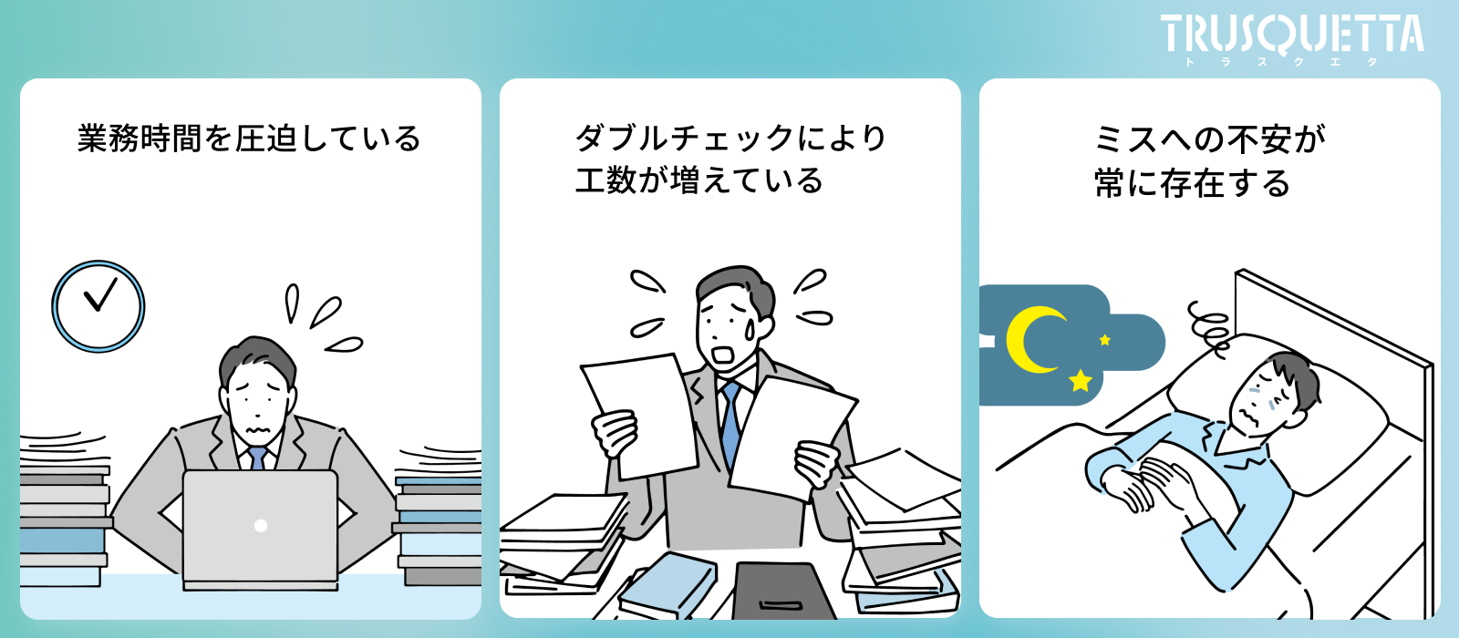 「時間がかかる」だけでなく“ミスへの不安”が業務を重くしていることが分かります。