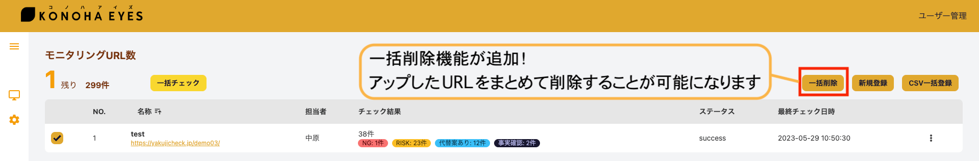 この度、統合管理ツール「KONOHA EYES」にてURLの一括削除機能を実装いたしました。